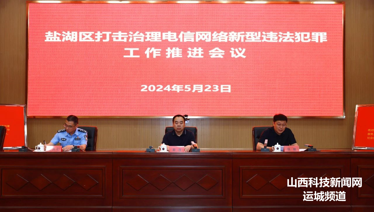 5月23日,盐湖区召开打击治理电信网络诈骗犯罪工作会议,副区长、盐湖公安分局党委书记、局长秦浩出席并讲话,区打击治理电信网络新型违法犯罪工作领导小组成员单位、各乡镇街道办主要负责人、分局相关警种部门负责人及各派出所所长参加,会议由政府办副主任张驰主持。