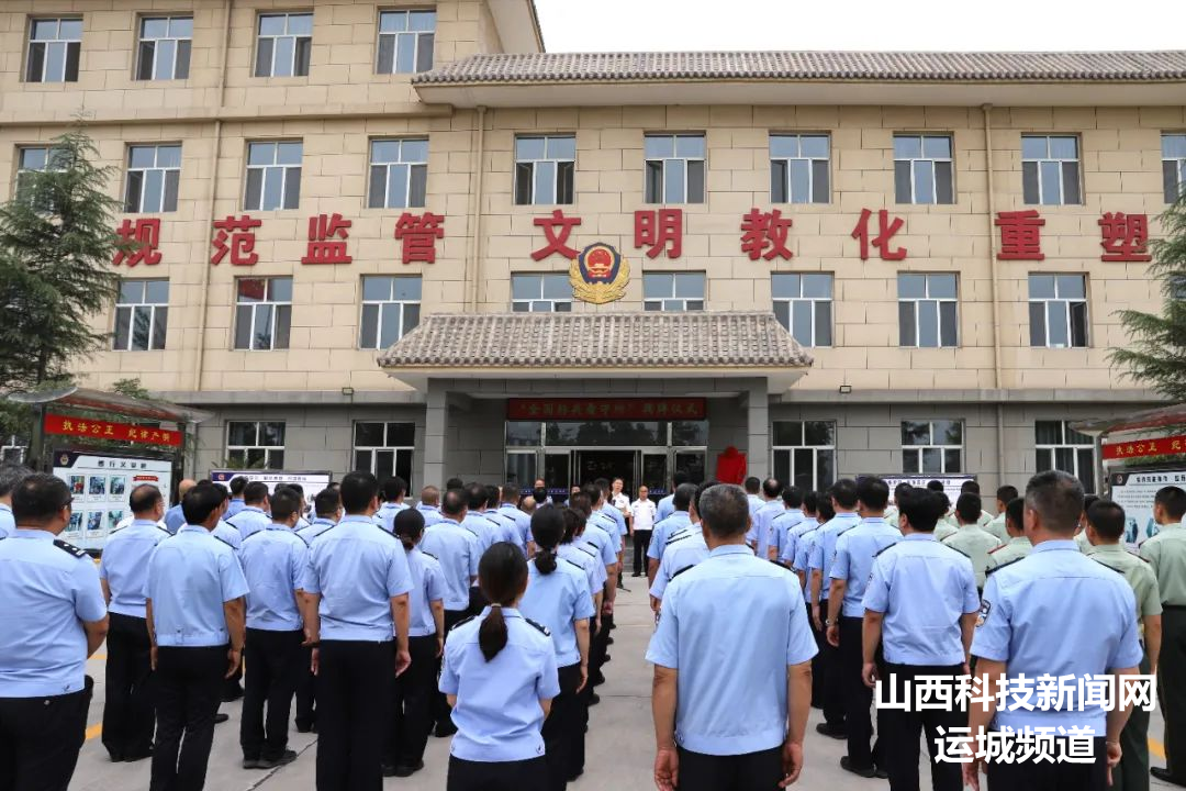 山西科技新闻网运城讯 6月6日,河津市看守所“全国标兵看守所”揭牌仪式举行。运城市副市长、市公安局局长刘春安,山西省公安厅监管总队总队长李茂,河津市委副书记、市长王云,武警运城支队上校政治委员李晓琳,河津市委常委、政法委书记李冬青,副市长、公安局局长李回安等参加仪式。
