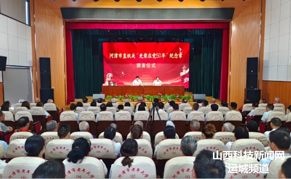 在“七一”来临之际,6月25日,河津市举行市直机关“光荣在党50年”纪念章颁发仪式。市委副书记李昭阳,市委常委、组织部部长薛伟科出席。