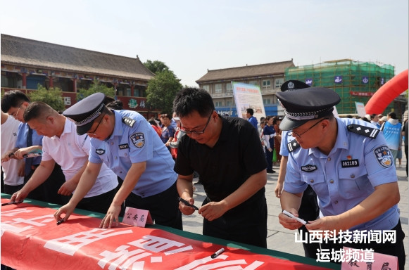 第37个国际禁毒日到来之际,新绛县禁毒委组织县公安局、检察院、司法局、教育局、市监局、妇联等成员单位在龙兴广场开展以“防范青少年药物滥用”为主题的毒品预防教育宣传活动。
