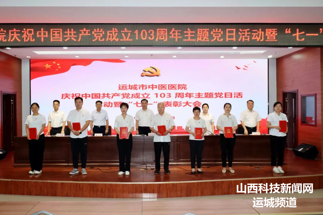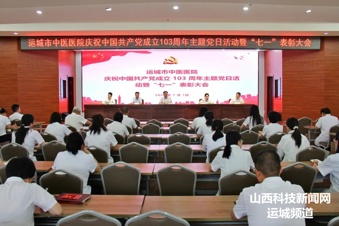 为庆祝中国共产党成立 103 周年,充分发挥先进典型的示范引领作用,7月1日,运城市中医医院在门诊综合楼八楼会议室召开建党103周年暨“七一”表彰大会。