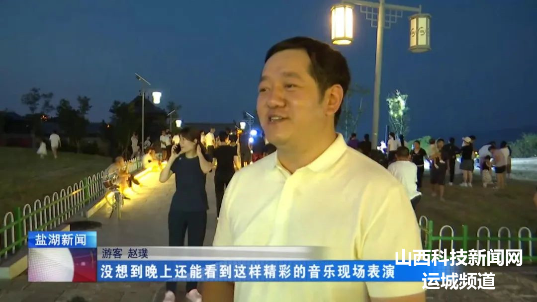 晚上8时,河东池盐文化博览园的草坪音乐会正式开启,演出曲目从传统民谣到流行音乐,从摇滚到爵士,风格多样,欢乐热烈。浓厚的现场氛围及近距离的互动,也为游客及市民带来一场酣畅淋漓的视听体验。不少游客表示,这样的活动让他们感受到了夏日夜生活的热情与活力,也为夜间旅游增添了一份特殊的记忆。