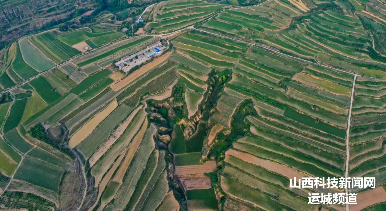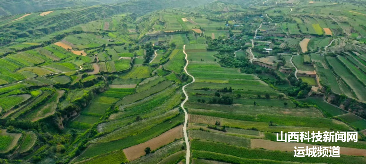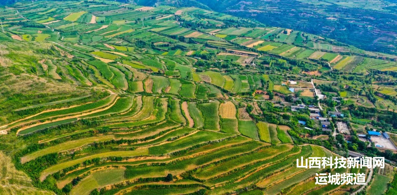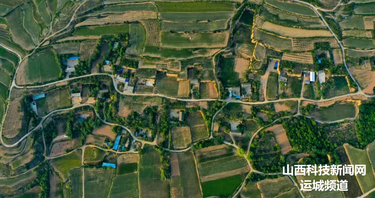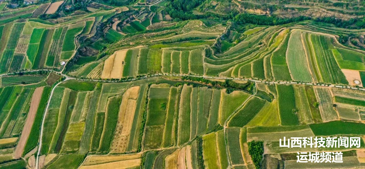 山西科技新闻网运城讯 7月4日,空中俯瞰运城市夏县南大里乡山区乡村,形状各异梯田里的绿色玉米、黄色柴胡与山村民居、蜿蜒道路及树木等相映成景,美如画卷。