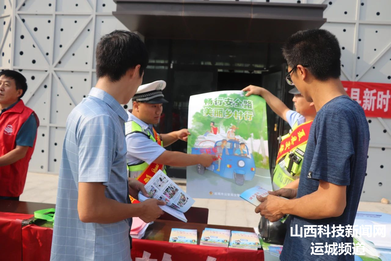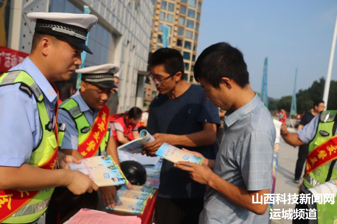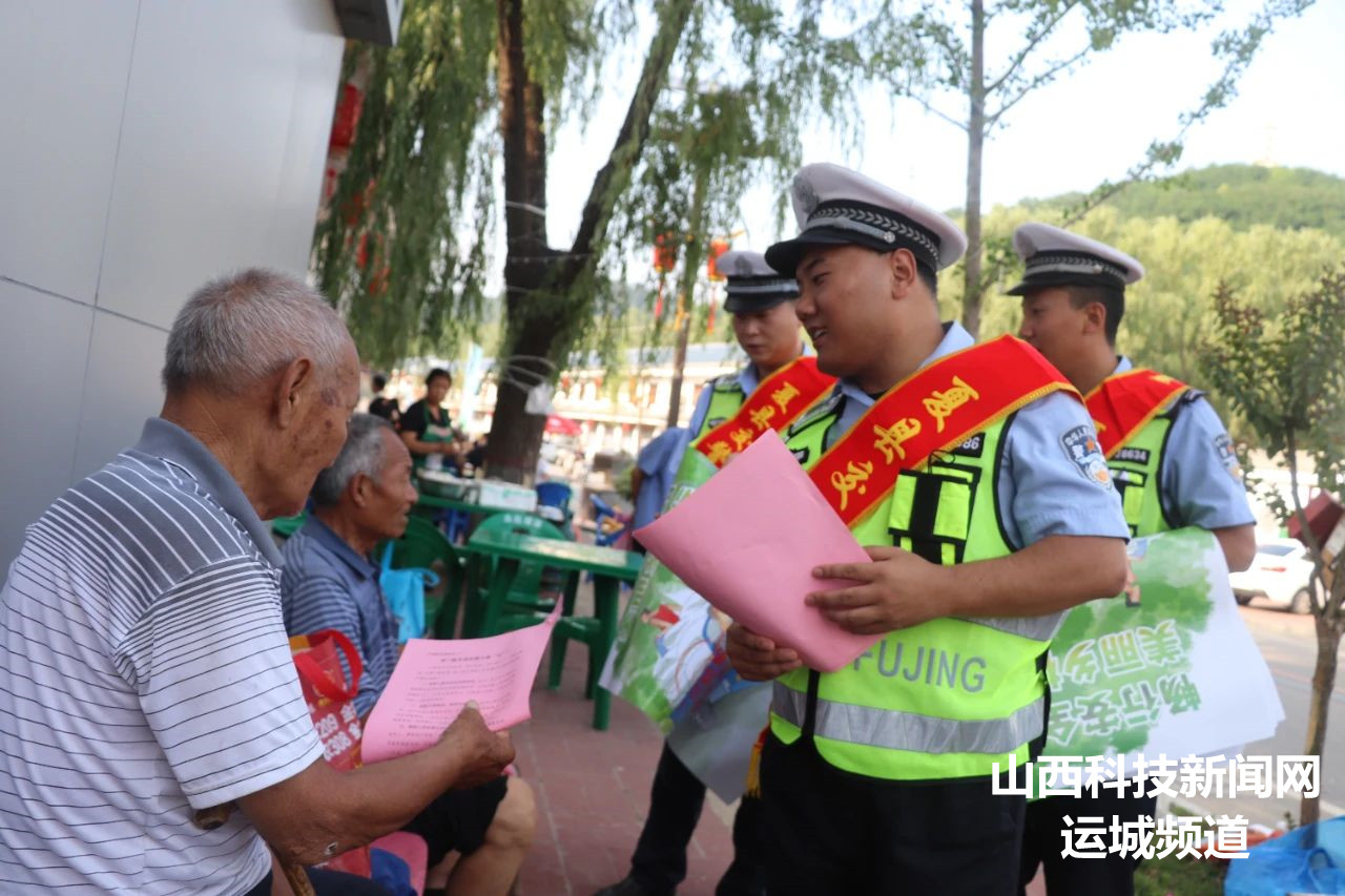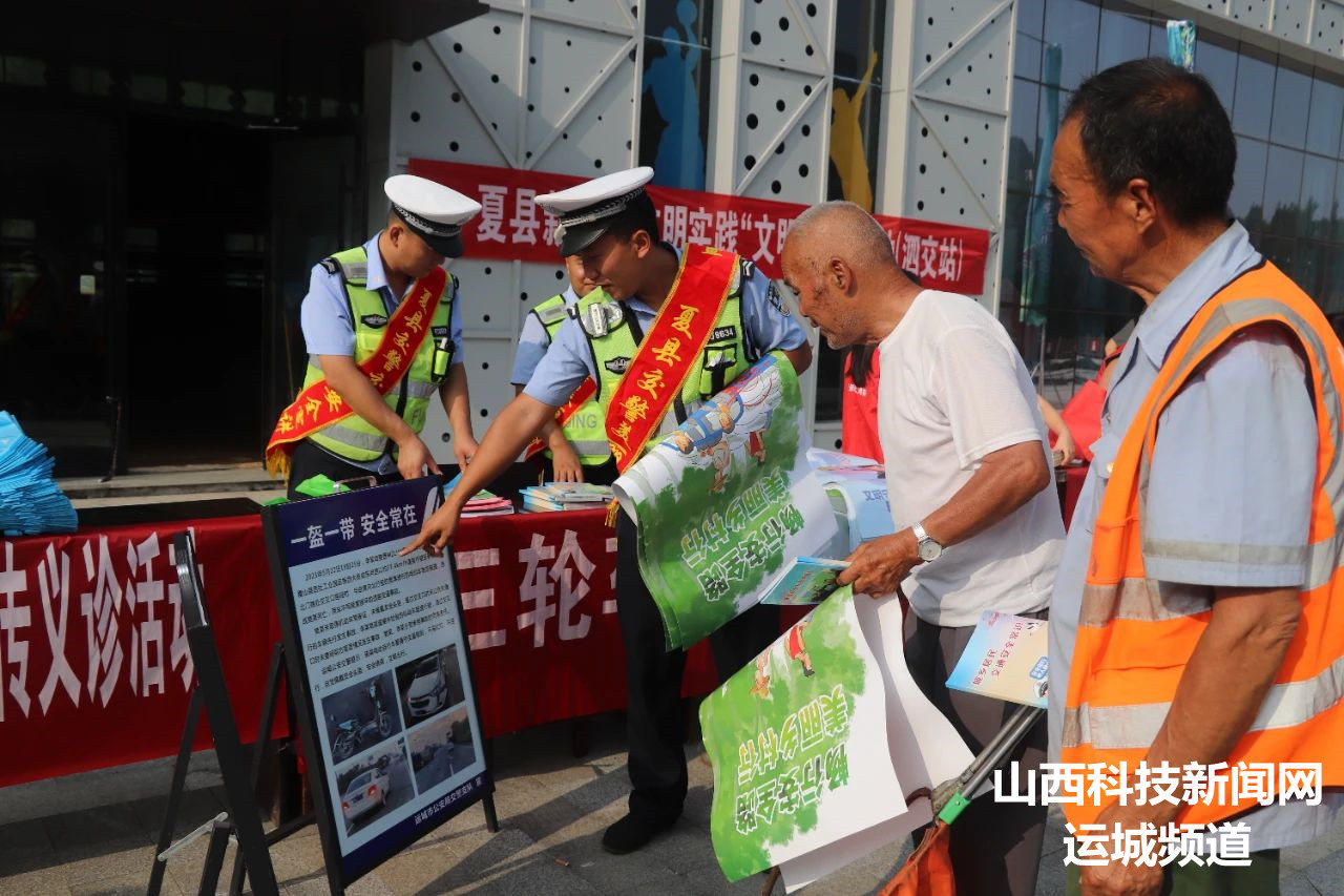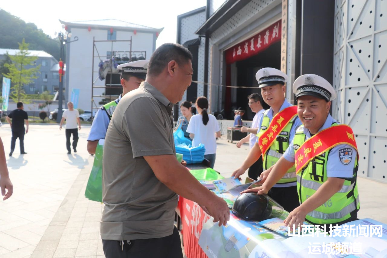山西科技新闻网运城讯 为推进“夏季行动”深入开展,全力以赴抓好高温天气道路交通安全管理工作,有效预防和遏制交通事故发生。7月11日下午,夏县公安局交通管理大队组织交通安全宣传小分队,借第二届泗交消夏文化旅游周开展夏季交通安全宣传普法活动,全力守护人民群众出行安全。