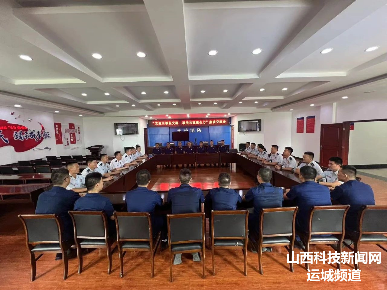 开发区大队组织全体人员前往永济市消防救援大队,通过面对面交流和近距离参观的方式,全方位、深层次地了解了基层党建、政治教育、文化建设、队伍管理等工作情况。