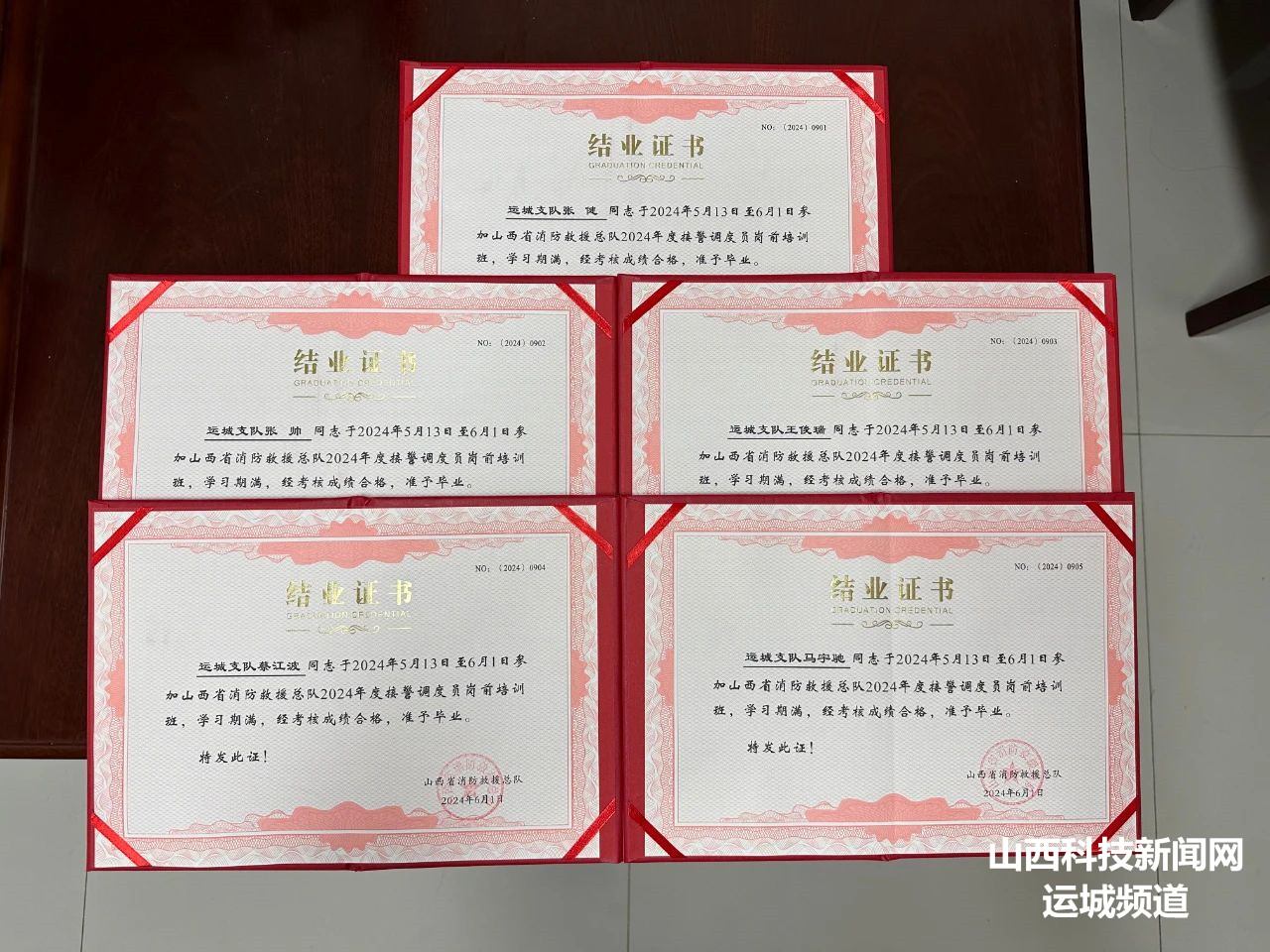 近日,山西省消防救援总队隆重召开了灭火救援指挥部半年工作总结会议,会上对2024年度全省指挥中心岗位业务培训工作给予了高度评价,并对优秀集体和个人进行颁奖。在颁奖仪式上,运城支队荣获全省“优秀接警调度团体”,5名新接警调度员均考评合格并颁发结业证书。