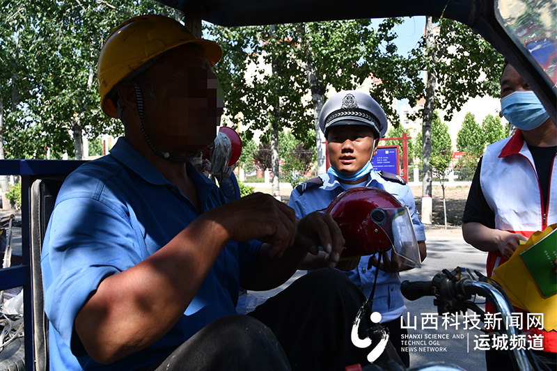 山西科技新闻网运城讯(牛慧霞 李官海 邢海龙)“这是工地上的安全帽,应该也可以吧!我感觉戴在头上多少还是有用的”。5月23日10时许,夏县公安局交通管理大队巡警三队在后夏线全村路段执勤时,对一辆三轮摩托车检查时,头戴安全帽的驾驶人满脸不解。