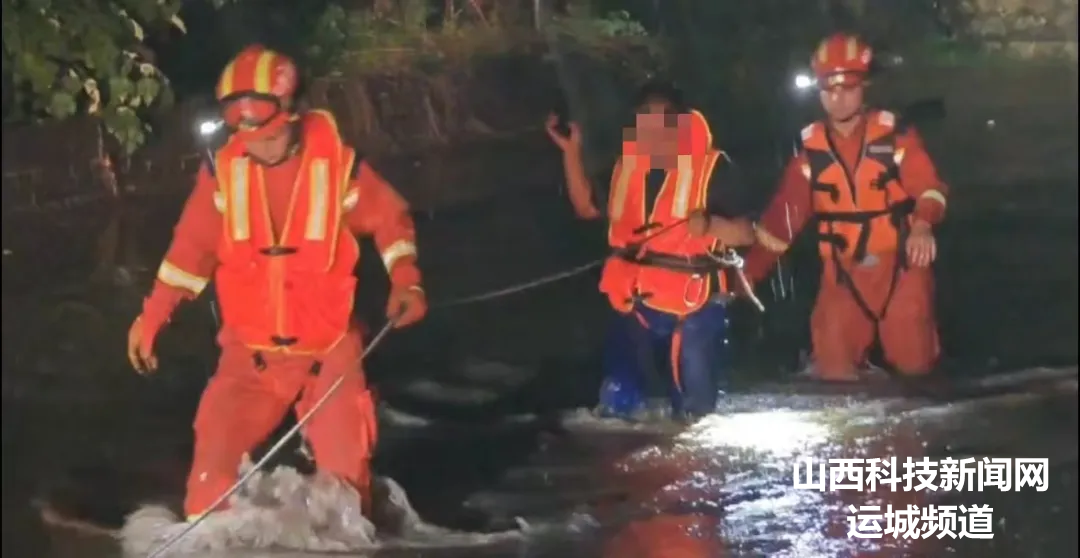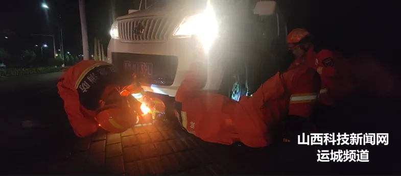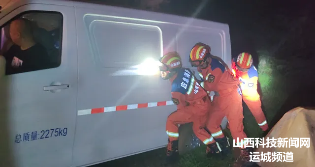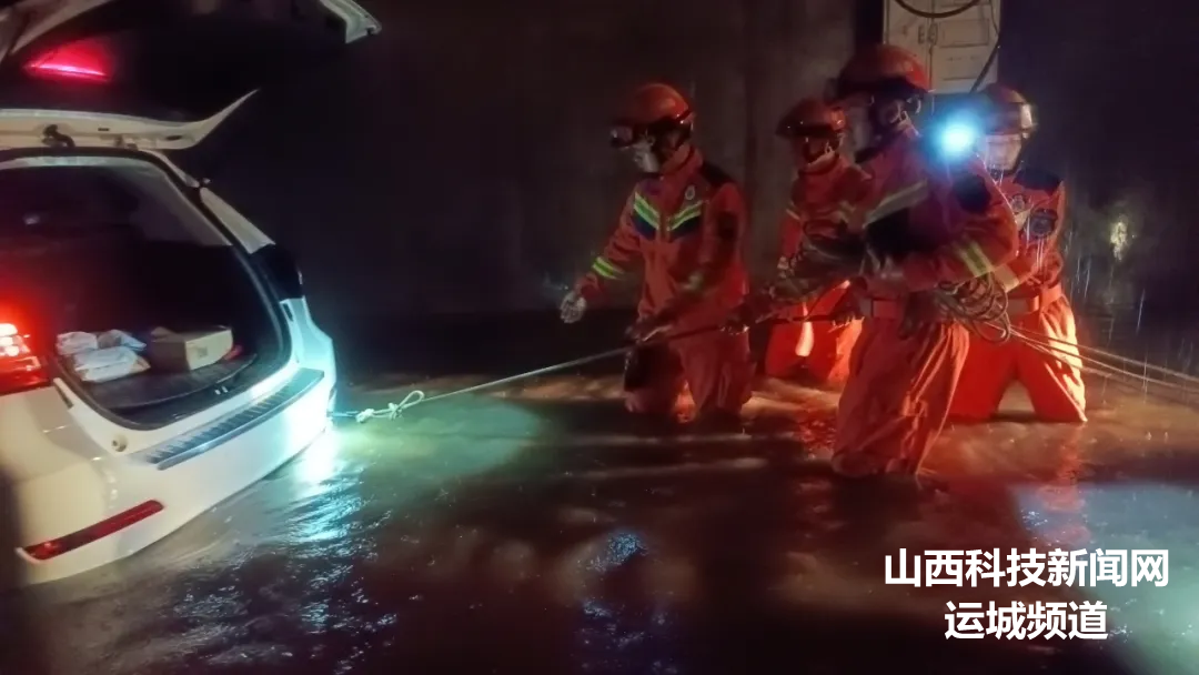 7月30日2时26分,河津市消防救援大队接到报警称,河津市清涧附近桥下汽车不慎驶入积水路面后抛锚,致使人员被困,河津消防立即组织消防救援人员前往救援。