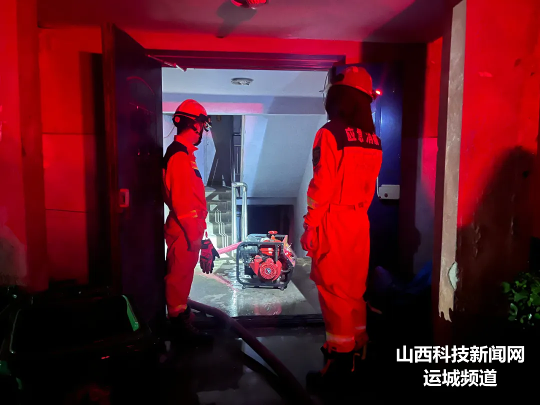 7月30日晚3时09分,运城经济技术开发区消防救援大队接到报警称,位于空港一小区居民楼因突降暴雨,居民楼地下室被水淹没,急需除险。接到报警后,军屯街消防救援站立即出动2车10人赶赴现场进行处置。