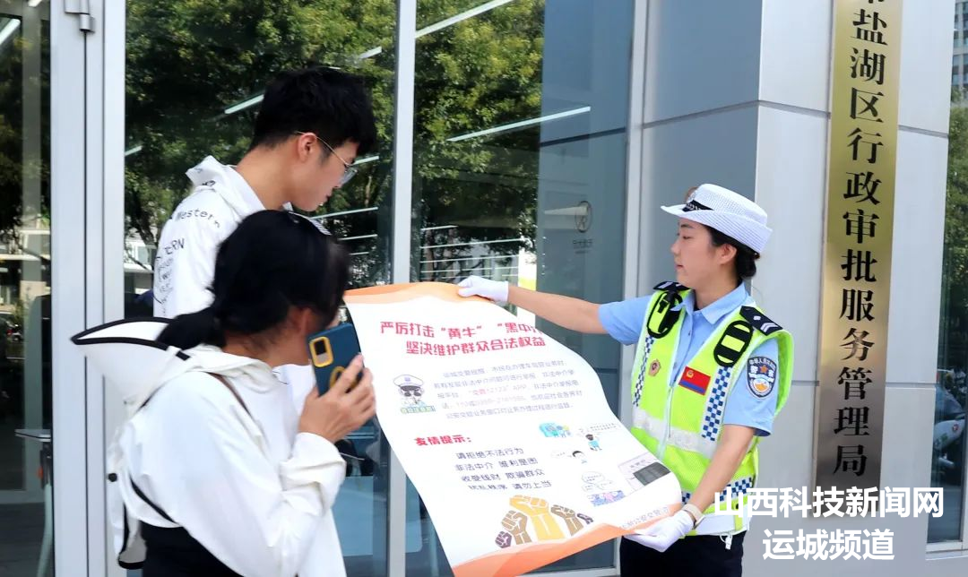 为深入整治公安交管窗口“黄牛”“黑中介”这一顽瘴痼疾,全力保障群众合法权益,8月1日,运城市公安局盐湖分局交警大队宣传民辅警开展严厉打击“黄牛”“黑中介”专项整治宣传活动。