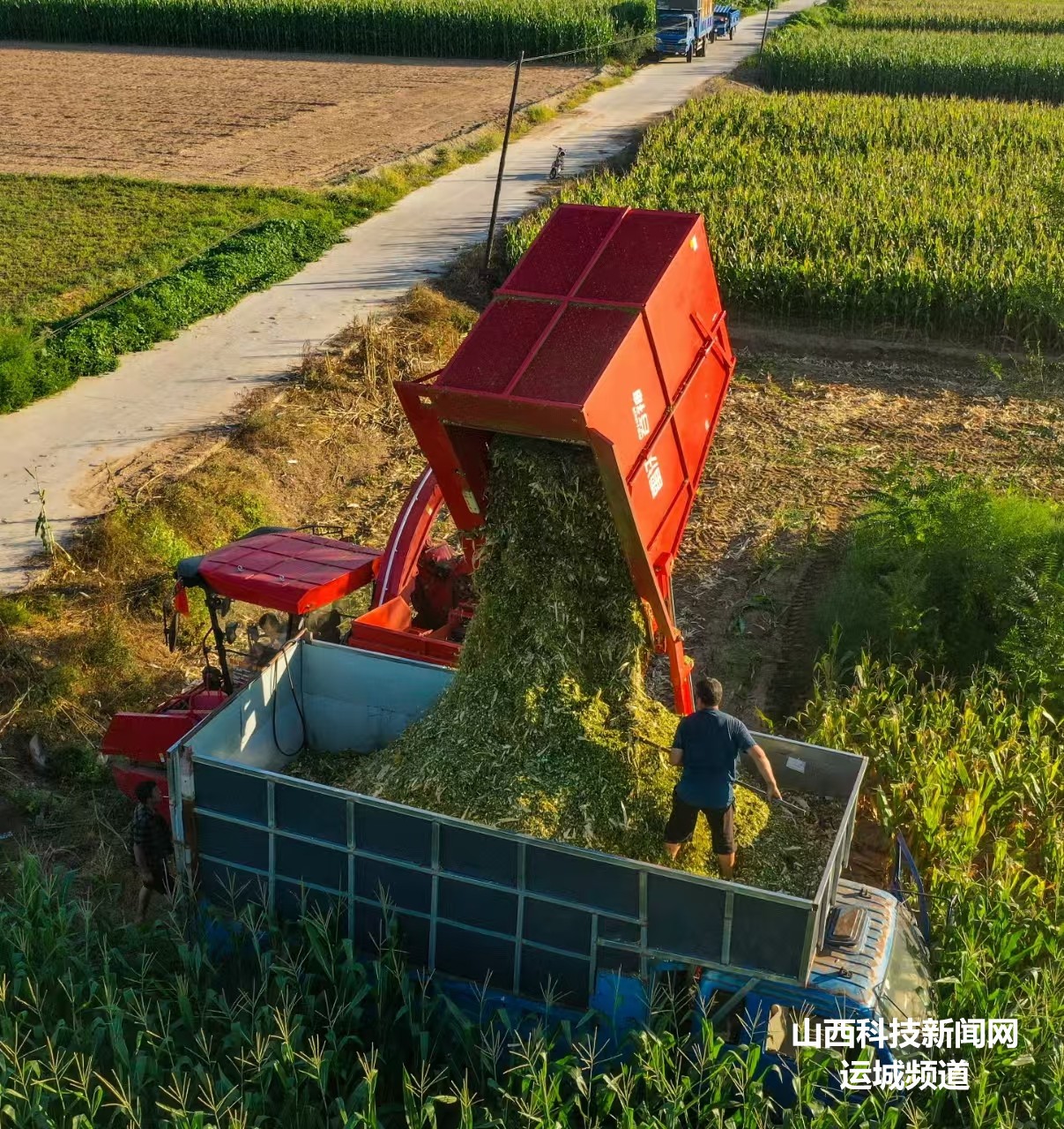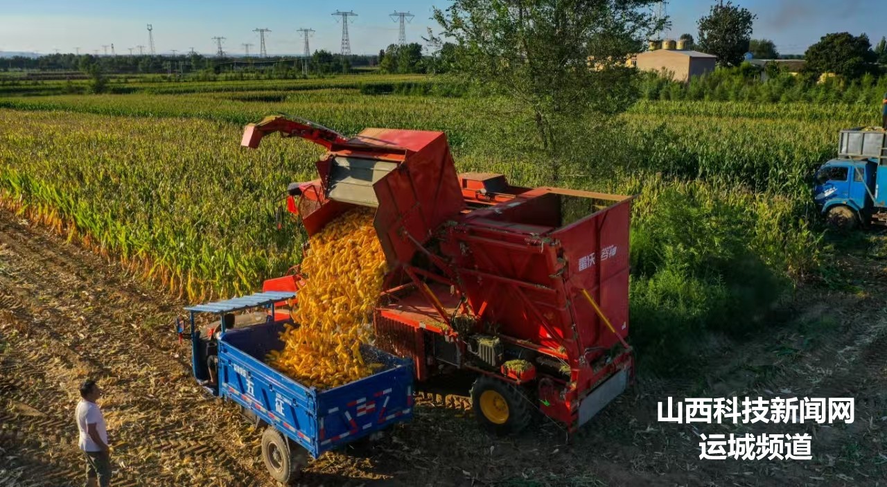 初秋时节,夏县种植的10万余亩春玉米陆续进入成熟收获期,农民趁着晴好天气抓紧抢收丰收的果实,确保颗粒归仓。(张秀峰 武曙光)