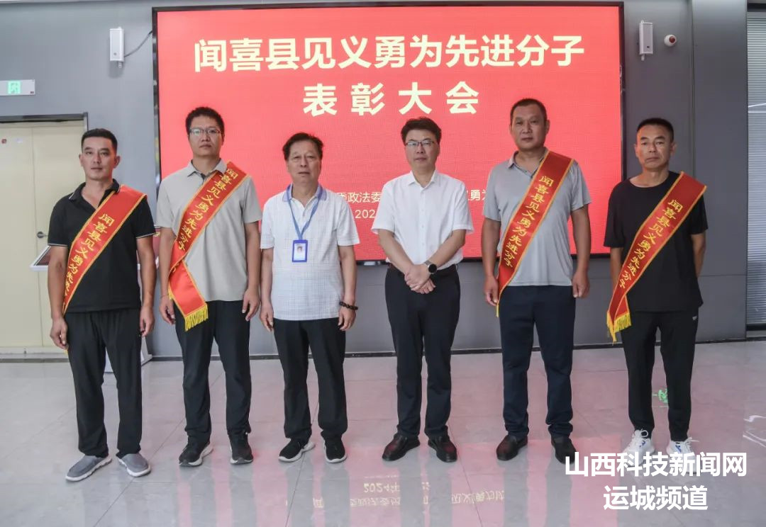 8月22日,闻喜县召开见义勇为先进分子表彰大会,对共产党员、退伍军人张伟杰,闻喜县融媒体中心工作人员郭晓霖,自主创业者王红海,畖底镇升压站打工人刘成友4名见义勇为者进行表彰奖励。分别授予他们“闻喜县见义勇为先进分子”荣誉称号,并每人奖励1000元。