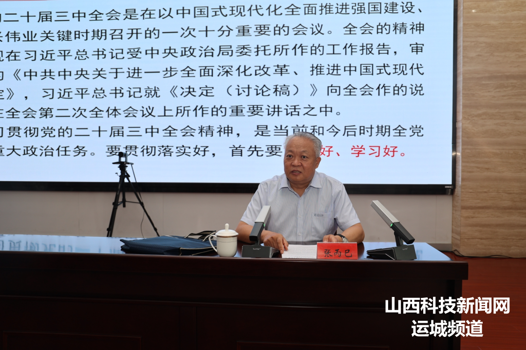 张丙巳从党的二十届三中全会的重大意义、重大成就和主题,全面深化改革的重要性、指导思想、总目标以及重大原则,坚持党的领导,深化党的建设制度改革,全力以赴抓好全会精神贯彻落实等四个方面,对全会精神作了全面宣讲和深入阐释。张丙巳指出,党的二十届三中全会是在以中国式现代化全面推进强国建设、民族复兴伟业的关键时期召开的一次十分重要的会议,是新的历史起点上进一步全面深化改革、推进中国式现代化的总动员、总部署。要更加紧密地团结在以习近平同志为核心的党中央周围,深入学习贯彻党的二十届三中全会精神,紧扣推进中国式现代化主题,以钉钉子精神抓好改革落实落地,推动党的伟大事业扬帆远航。