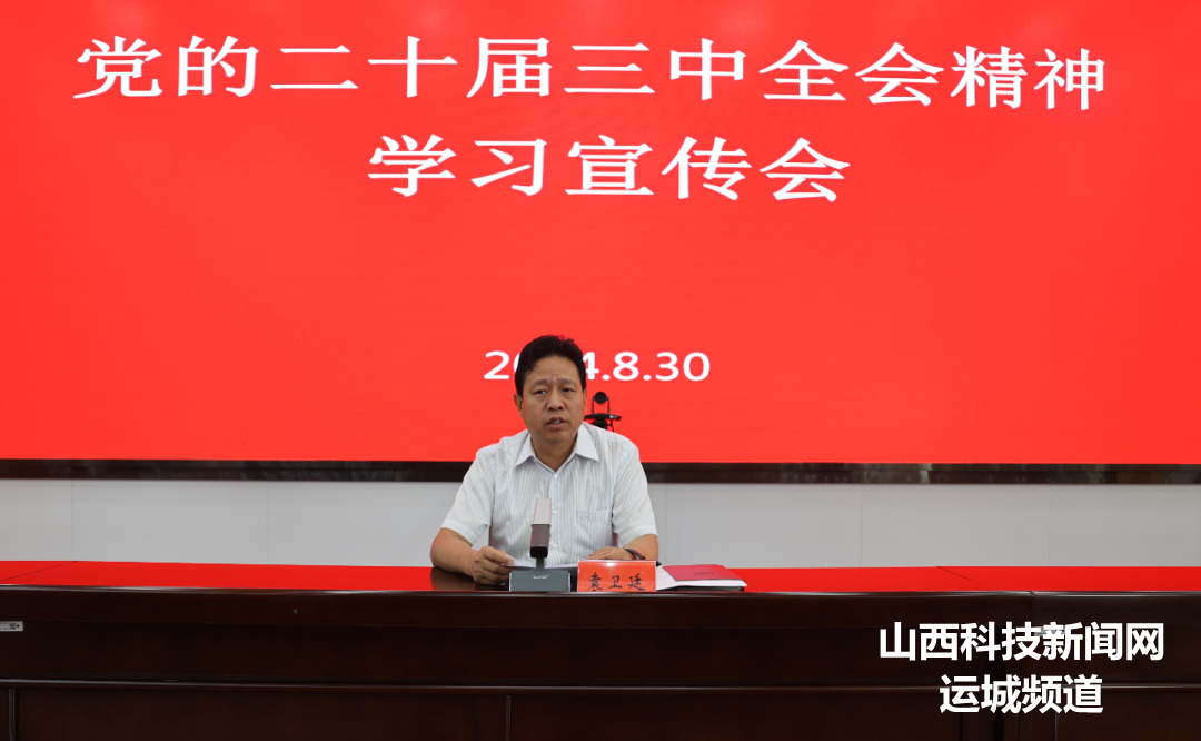 8月30日,运城市生态环境局邀请市直机关讲师团成员、二级巡视员张丙巳宣讲党的二十届三中全会精神,此次宣讲活动以视频方式组织,市局设主会场,13个分局设分会场,全市生态环境系统党员干部职工1200名党员干部职工参加听课学习,党组书记、局长袁卫廷主持宣讲活动。