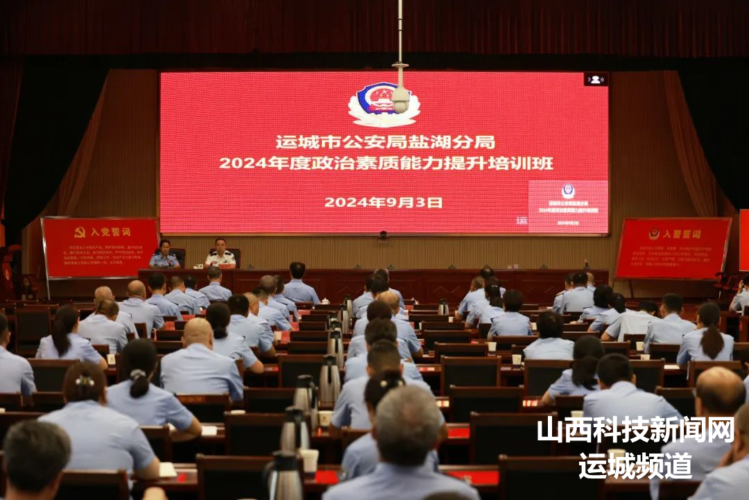 为切实提升民警的政治判断力、政治领悟力、政治执行力,更好履行党和人民赋予的新时代职责使命,9月3日,盐湖公安分局举办了2024年度政治素质能力提升培训班,分局党委成员、各科室所队负责人、全体民警共600余人参加。