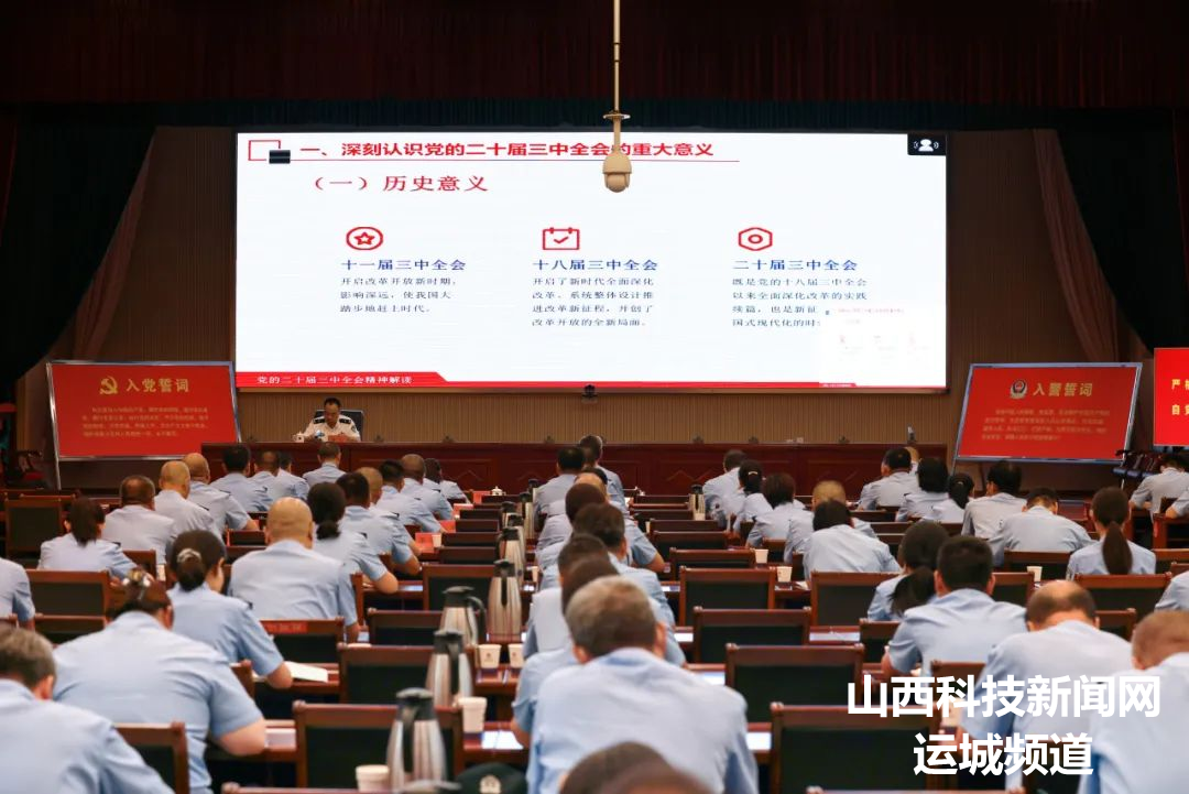 副区长、分局党委书记、局长秦浩以“学习贯彻党的二十届三中全会精神”为题,为全体民警讲授了开班第一课。秦浩同志围绕深刻认识党的二十届三中全会的重大意义、深入学习领会习近平总书记在全会上的重要讲话精神、全面准确把握《决定》提出的进一步全面深化改革重大举措、全力以赴抓好全会精神贯彻落实4个方面,对全会精神作了全面宣讲和深入阐释。