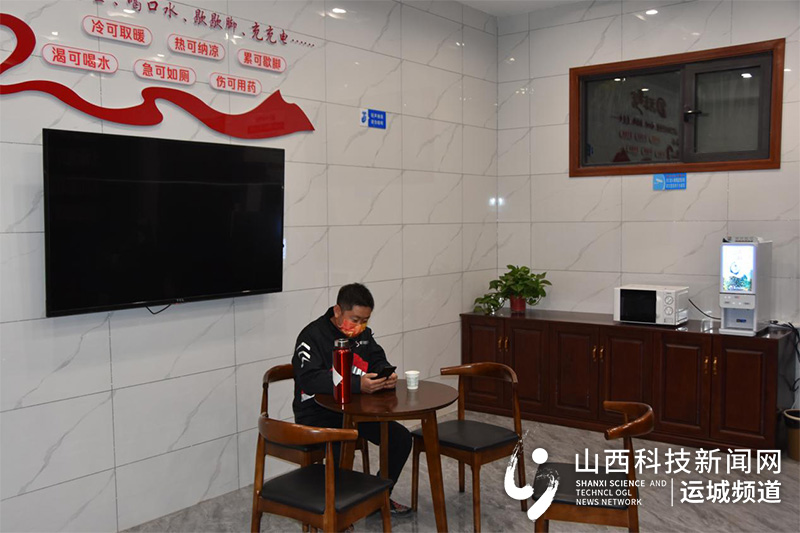 5月25日23时许,记者来到河东驿站中银路站,师小哥作为一名同城急送的快递员正在驿站里休息,他告诉记者:“河东驿站开启24小时服务真是太棒了!例如我刚刚10点40完成了一单急送后就可以在驿站里歇歇脚,这里环境干净整洁,能够提供免费的热水喝,有充电设备还有免费WIFI,让我在休息之余不耽误我接收订单,真的是太贴心太舒适了!”