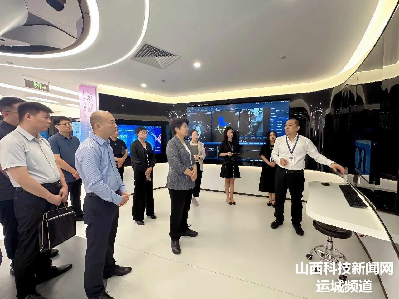 在数坤科技公司,解芳一行实地参观了智慧医疗展厅,详细了解了企业发展历程、AI应用、服务模式等情况,并与公司晋蒙冀区域经理王慧茗进行了座谈交流。