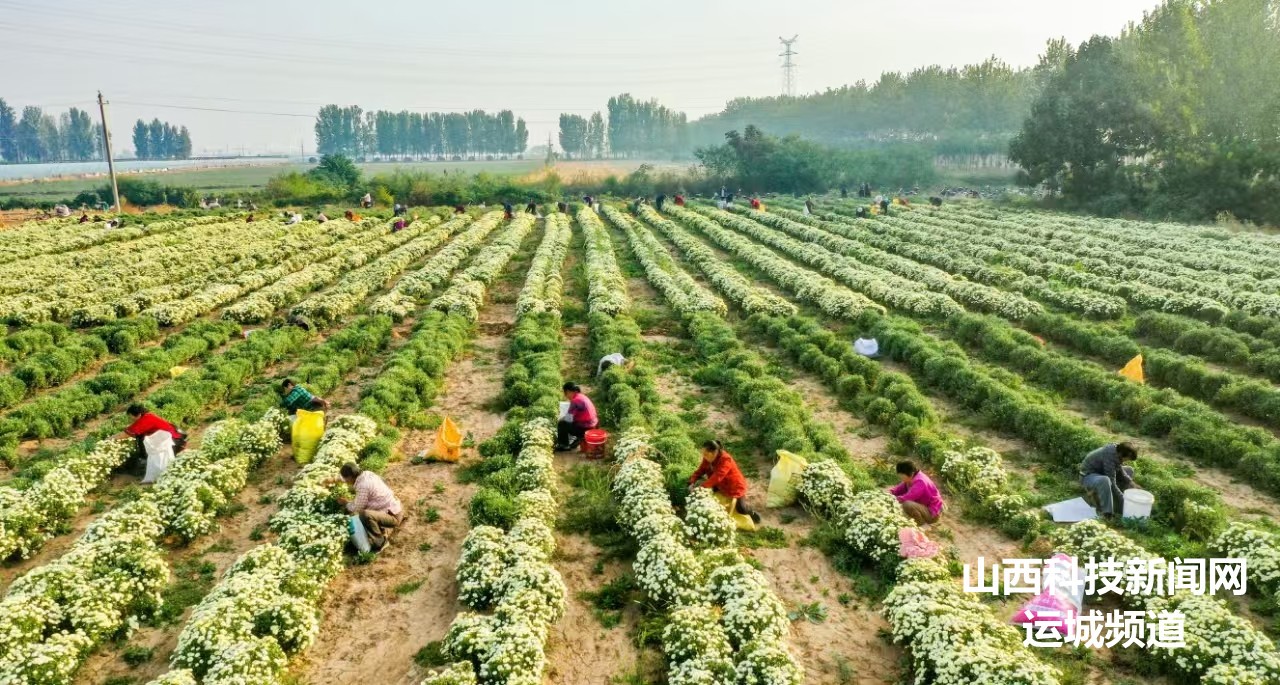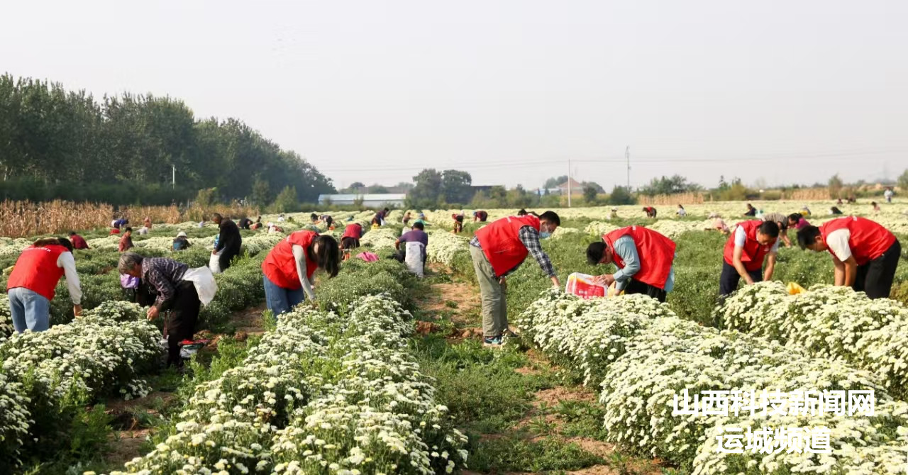 金秋时节,夏县南大里乡种植的千亩菊花迎来丰收季。当地通过党建引领,采取“合作社+基地+农户”模式,引导群众大力发展特色菊花产业,带动农业增效、农民增收。(张秀峰 乔武辉)