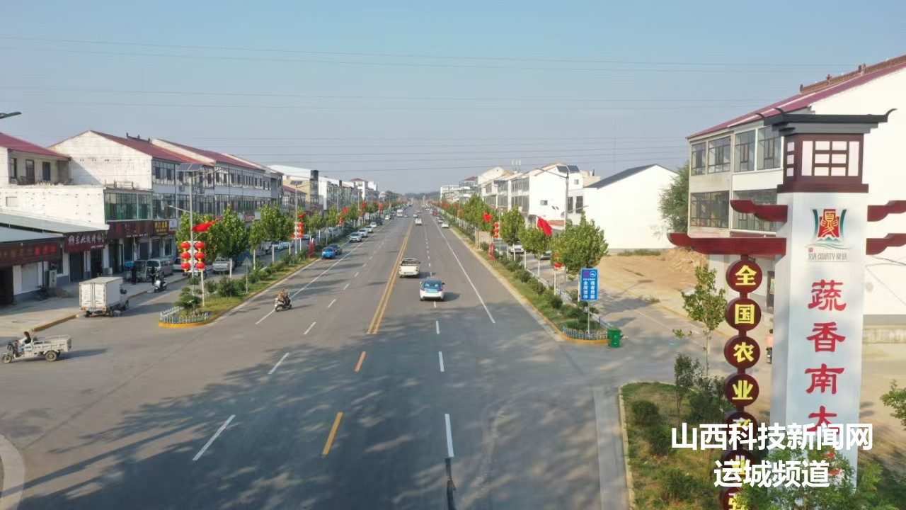 山西科技新闻网运城讯 9月26日,航拍夏县南大里乡,宽阔整洁的街道上,国旗飘扬、红灯串串、树木碧绿,与周边村庄的多彩民居、金色田园等交相辉映,营造出喜迎国庆75周年的浓厚氛围。(张秀峰 冯博政)