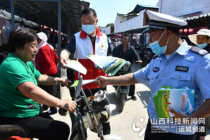 山西科技新闻网运城讯(牛慧霞 李官海 邢海龙)为切实提高农村群众交通安全意识和自我防护意识。6月5日,夏县公安局交通管理大队联合县红十字会志愿者深入裴介镇农村集市,开展夏季交通安全宣传活动。