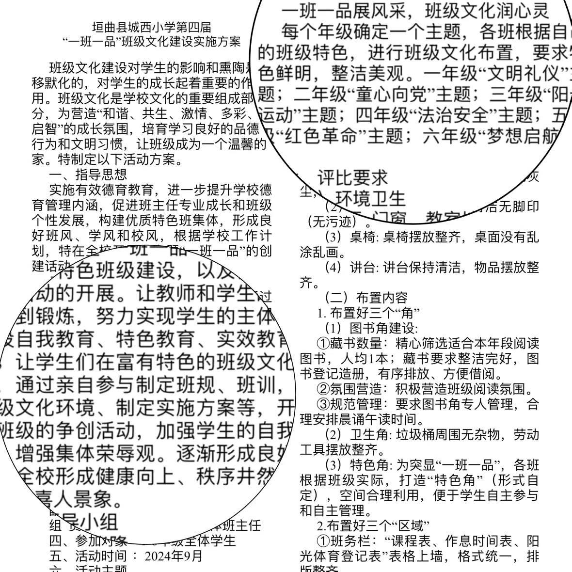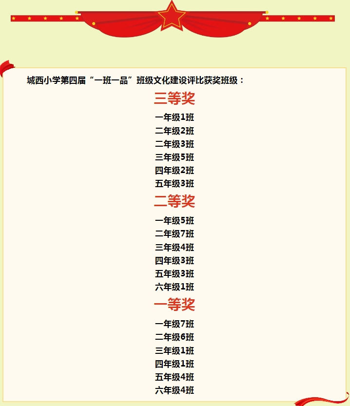 班级文化是一个班级的灵魂,是班级的精神、目标、价值观以及共同行为准则的总和,是班级的共同记忆和根本性质。因此,对于班级来说,不仅需要注重学生的成绩和知识水平,更需要塑造班级文化,让每个学生都能够在和谐的环境中学习和成长,让班级成为一个有温度、富有特色的大家庭,在学校“讲品德•重品行•求品质”的教育理念引领下,垣曲县城西小学第四届“一班一品”班级文化建设工作如火如荼地开展着。