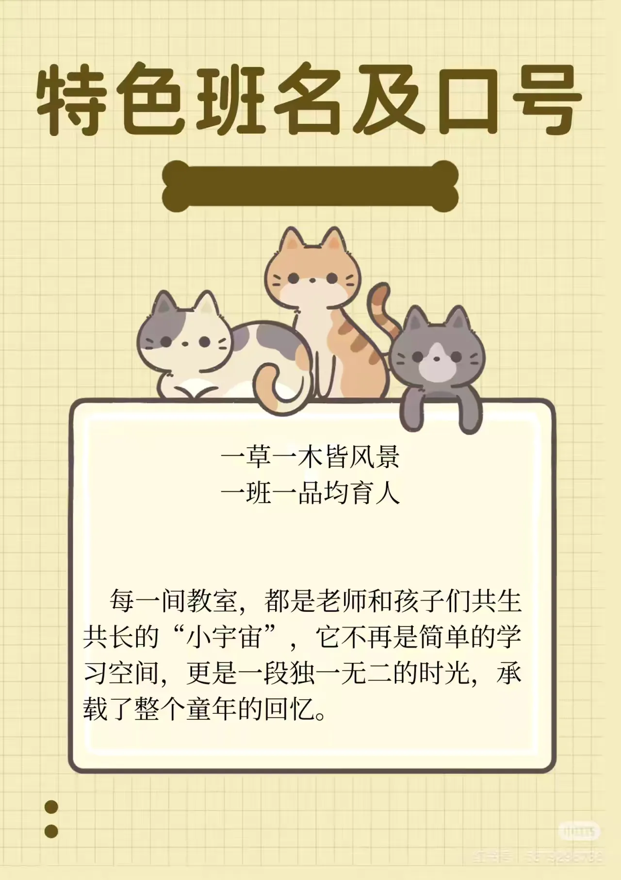 班主任和学生集思广益,积极整理班级的各个角落,巧妙布置,纷纷亮出了自己的班级文化特色。整洁的卫生角、真诚的心愿墙、有趣的知识科普、温暖的心情驿站以及富有哲理的名言警句等,都是教室亮丽的风景线。浓厚的班级文化氛围为学生们创设了一个舒适、温馨的学习、生活环境。