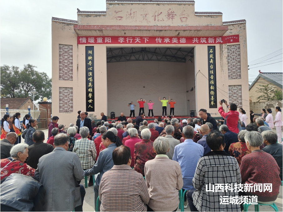 石湖村联合芮城县第一职业中学举办“九九重阳节,浓浓敬老意”主题活动,活动现场为老人们上演了一系列精心编排的文艺表演,为老年人爱心义剪、义诊和提供爱心午餐,并前往行动不便老人家中为他们打扫卫生。朱阳村联合西建集团举办“九九重阳节”庆祝大会,会上表彰了“孝老爱亲模范”“五好家庭”并进行戏曲表演,为全村老年人发放节日慰问品。上庄村联合镇新时代文明实践所开展“敬老爱老 代代相传”文明实践活动,活动中志愿者在日间照料中心亲手为老人们包饺子并准备敬老宴,向高龄老人发放慰问品和重阳红包,为他们奉上一份暖胃暖心的关怀与慰问。