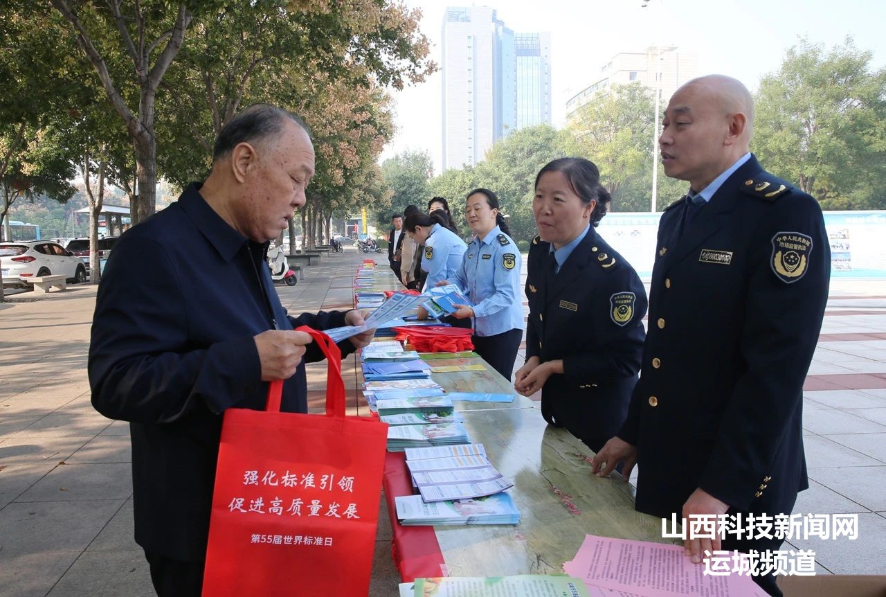 10月14日,运城市市场监管局联合盐湖区市场监管局、开发区分局在体育公园组织开展以“强化标准引领 促进高质量发展”为主题的2024年世界标准日主题宣传活动。市局党组成员、副局长、二级调研员贾文生参加活动。