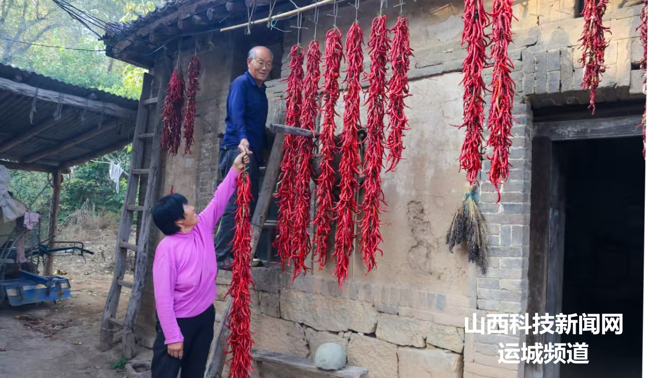 山西科技新闻网运城讯 10月16日,在夏县祁家河乡境内黄河岸边的横口村高洼自然村,村民安五科夫妻俩正在小院里忙活,屋檐下悬挂的一串串红辣椒和场上堆放的一袋袋金黄色玉米,给他们又带来了丰收的喜悦。