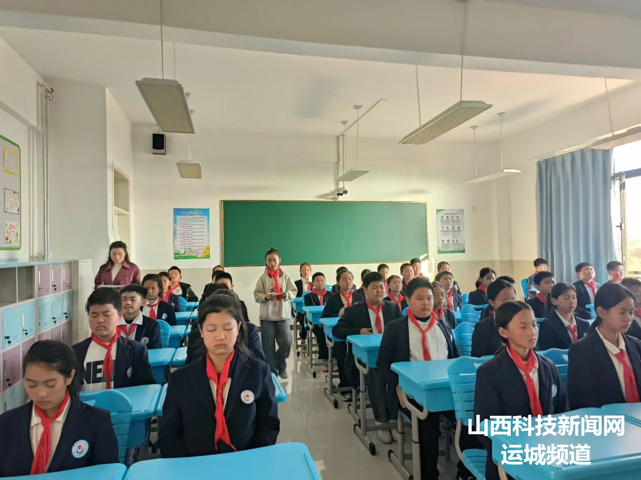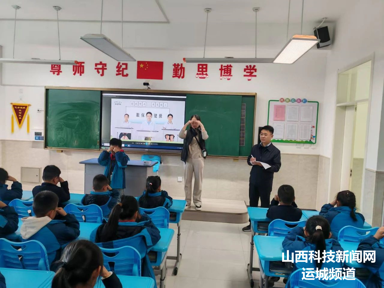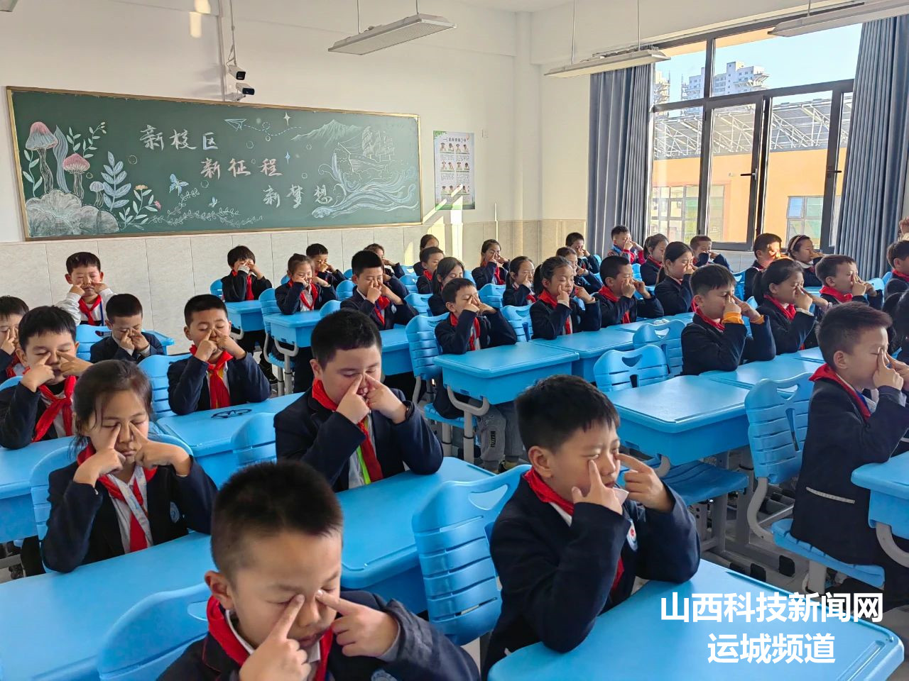 在明亮的教室里,同学们个个精神饱满,坐姿端正,以最佳的状态迎接这场比赛。当熟悉的眼保健操音乐响起,同学们轻闭双眼,对准穴位,跟着节奏,认真地按揉起来。他们动作规范、整齐划一,展现出了良好的精神风貌,他们的神情专注而认真,仿佛在呵护着世界上最珍贵的宝藏。