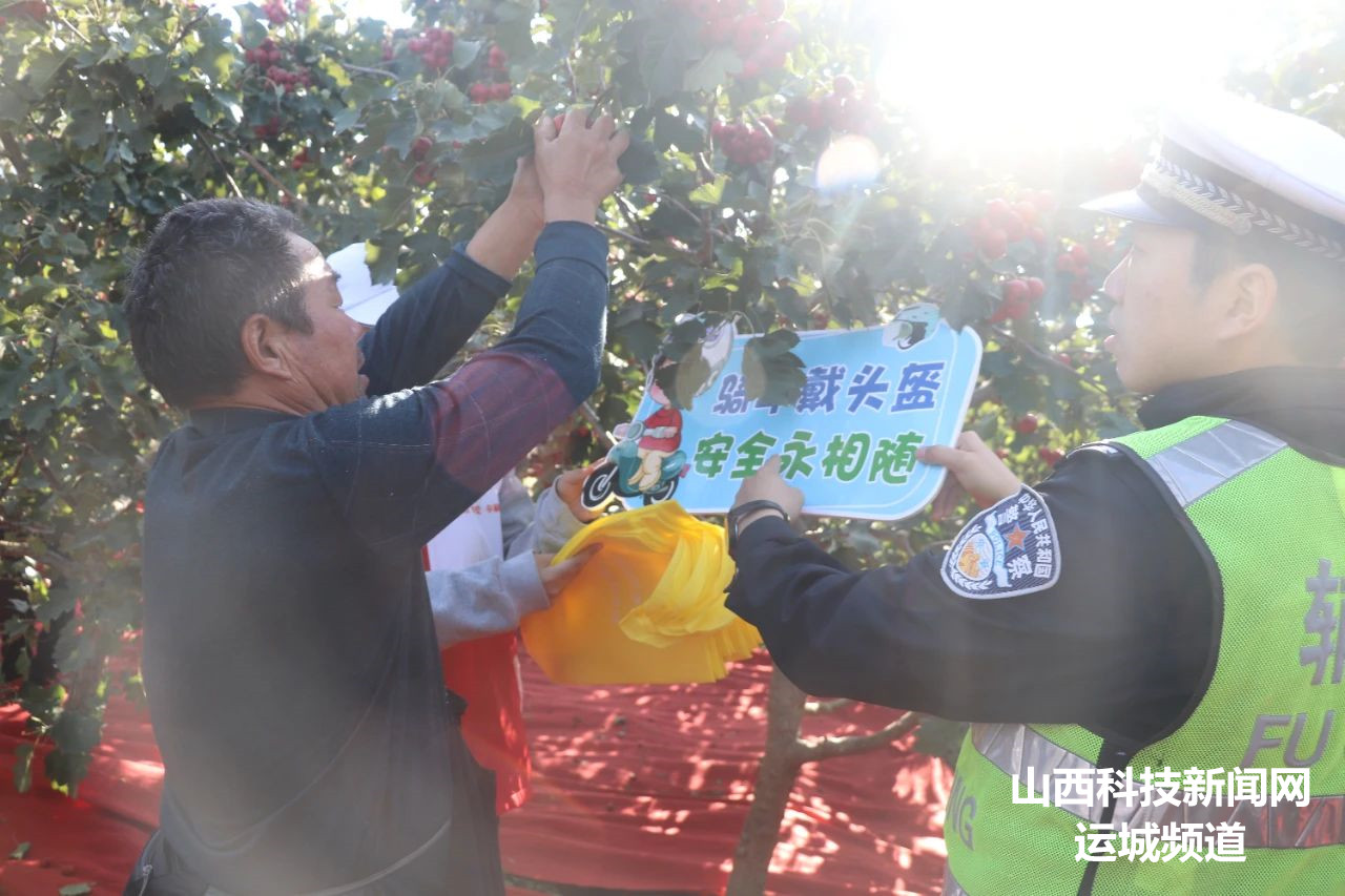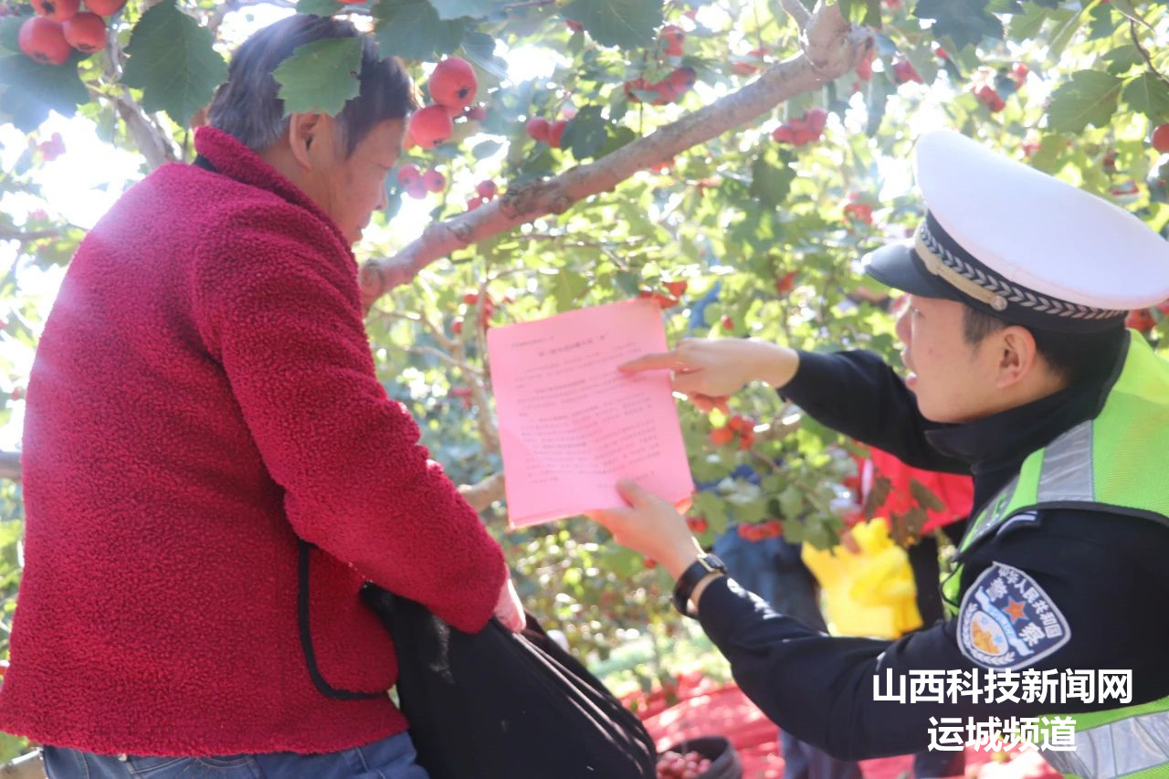 山西科技新闻网运城讯 10月24日,夏县公安局交通管理大队组织民警走进裴介镇石桥庄村山楂采摘园,开展交通安全宣传活动。