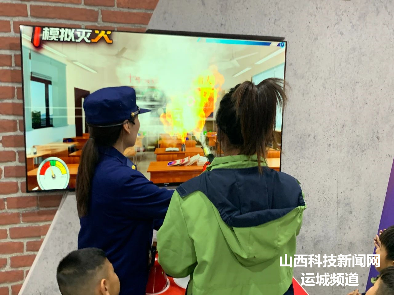 随后,幼儿园的师生走进科普教育馆,宣传人员采取现场讲授、互动问答、操作演示等形式带领幼儿园师生们在寓教于乐中畅游消防科普知识区、模拟119电话报警区、消防器材展示区等,并结合模拟灭火游戏中不同的模拟场景,邀请老师选择相应的灭火器进行了实操模拟灭火。