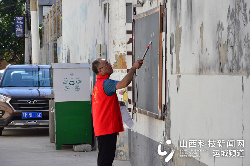 市科协志愿者在清理墙上小广告