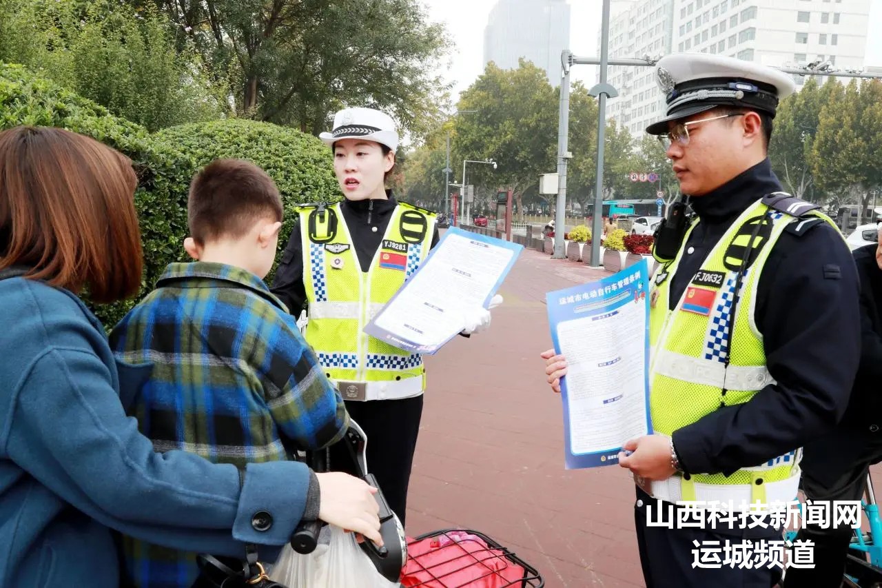 《运城市电动自行车管理条例》于2024年11月1日施行。为进一步提高群众知晓率,增强市民文明守法意识和安全防护意识,11月1日,运城市公安局盐湖分局交警大队联合运城市电动车协会走进辖区南风广场,开展以“讲新规 宣《条例》 文明出行你我他”为主题的电动自行车新规宣传。