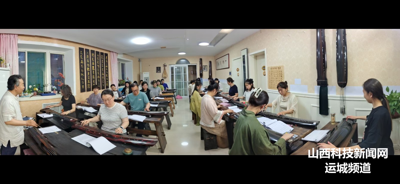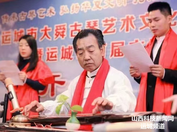 “兴趣是基础,爱好是动力”,陈富国利用业余时间寻师问学,他先后走访了多位全国有名大师和浙派古琴大师黄德老先生,请教学习,探访历史故事,在古老的河东黄土地上追寻古琴与“古中国”的缘源。运城地处晋、陕、豫黄河三角地带,全市102个景点,古迹星罗棋布,是“古中国”历史长河中最耀眼的一道风景线,“女娲抟土造人、炼石补天”的传说,“尧王访贤、舜耕历山、大禹治水”等先贤文化。西侯度遗址180万年前人类文明的第一把圣火点燃地,永乐宫精美的元代壁画,被誉为东方艺术画廊,后土祠、秋风楼、关帝庙、裴氏文化等等,悠久的历史,丰富的文物古迹,成为他探索“古中国”与古琴之间的天然课堂和百科全书。他说,舜弹五弦之琴,歌《南风》之诗,就是发生在古老河东的故事,是“古中国、新运城”的文化元素,反映了古琴与中华民族历史深厚。古琴的最早文字记载见于《琴操》、《礼记》、《诗经》等典籍,显示古琴在周朝时已广泛用于郊庙祭祀、朝会、典礼等雅乐,同时也在民间盛行,表明古琴在当时的社会生活中占有重要地位。运城是“古中国”的一个缩影,至今与古琴有着千丝万缕的联系,市区北有舜帝陵的舜帝抚琴大型雕塑、南有神池庙舜帝古琴弹琴台,还有南风广场、南风集团等诸多现代元素。最为有说服力的中国博物馆珍藏的古琴,是平陆县程宽老先生捐献的无价之宝。作为运城这块黄土养育的一名学者,有责任、有义务为建设文化大市尽一份微薄之力。他说,古琴“高山流水”是最古老、世界最著名、代表中国非遗的名曲,是交朋友、传播友谊、忠贞爱情的象征,还有“琴剑走天涯”的传说。古琴不仅是乐器,更是哲学思想和审美情趣的体现。它以其深沉而悠远的音色,给人以宁静、深邃、悠扬的感觉,被古人视为修身养性的工具,与道家、儒家的思想紧密相连。古琴音乐注重“以音乐感天地之道”,与儒家的“天人合一”、道家的“道法自然”以及佛家的“般若空性”等哲学观念相契合。古琴与诗词、绘画艺术也有着深厚的联系。古琴在古代社会中还承载着教育、礼仪、道德等功能。据传,舜帝是五弦琴的创制者。他以梧桐木为制琴的材料,以蚕丝为弦,制成五弦琴,分别代表了金、木、水、火、土五行元素,象征着宇宙间的平衡与和谐。琴长三尺六寸五分,代表365天。舜帝弹奏并创作了《南风》之曲,安抚天下,教导民众顺应自然,勤劳耕作,和睦相处,使国家繁荣昌盛,社会安定和谐,代表着上古时期人们对美好生活的追求,对自然界的敬畏,以及通过音乐教化人心的理念。随着时代的变迁,五弦琴逐渐发展为七弦,琴棋书画成为文人官吏的标配,但其背后承载的哲学思想和文化价值却一直延续至今。