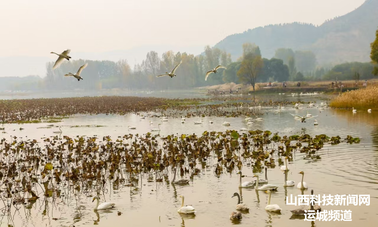 近年来,地处山西最南端的运城市平陆县,持续推进黄河沿岸湿地生态治理与环境修复,吸引万余只大天鹅每年飞抵宽阔的湿地越冬,拉动当地农文旅产业深度融合,助推县域经济高质量发展。(张秀峰)